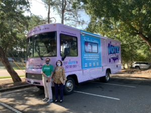 Happy Halloween! On October 31st, the Ruthless Vote Getter RV once again rolled into Raleigh, NC as part of a campaign to promote the ratification of the ERA amendment (28th) across the Southern States. This brightly painted RV spearheaded a multi-car Halloween VoterCade to help keep ERA ratification as well as the woman’s right to vote issues on the minds of individuals who clapped and shouted as the parade made its way across town. This car parade was organized by NC ERA Alliance, and Vote Equality with many of the other women’s organizations (AAUW-NC, NOW-NC, LWV-W, etc.) joining in to show their support. Several of the supporters proudly signed their names and organizations with markers on the side of the RVG van. With their car horns honking, purple, gold and white balloons attached to white ribbon streamers flying in the wind, signs promoting the passage of the ERA prominently displayed on the sides of vehicles, and shouts and other horns honking along the route, the car parade wound its way through the back roads of Raleigh, and past a few historic landmarks like Shaw University, the Memorial Auditorium, and the State Farmers’ Market before pausing for a brief time of socialization among participants in the parking lot of the North Carolina Art Museum.. When the General Assembly meets again for its long session, the hope is that an ERA ratification bill will once again be introduced in both the House and the Senate, and then come to the floor for a vote. This could be the year that North Carolina will proudly become the 39th state to ratify this important amendment!